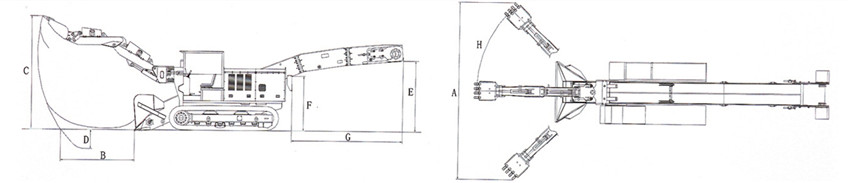本機為四輪驅動,推動力大、扒取範圍廣、全斷麵裝岩、不留死角,不需人工輔助清理工作麵;